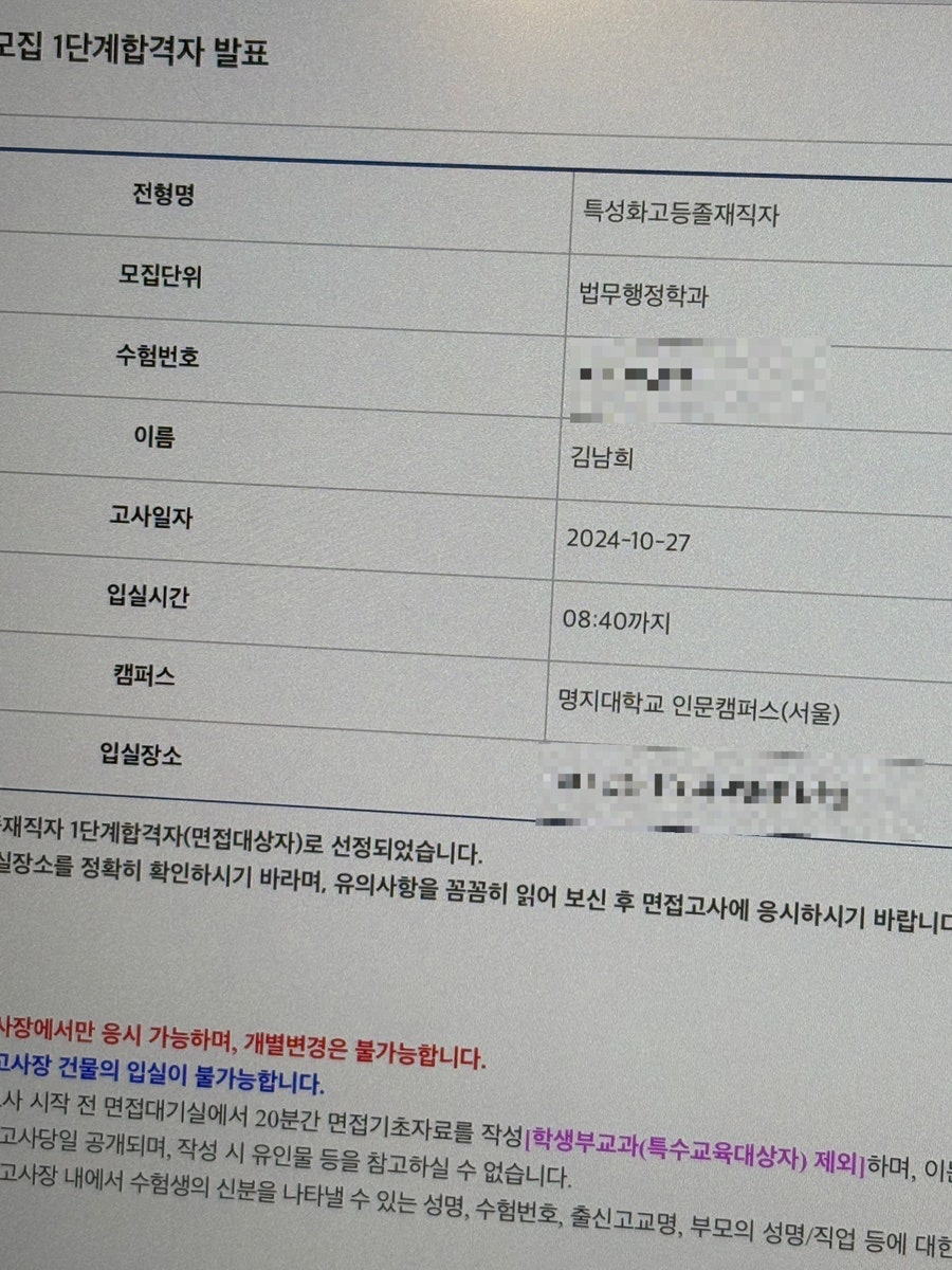 지난번에 올렸던 대학 수시 원서 지원 후기에 이어 최근에 명지대학교 1차 발표가 났는데 다행히 합격을 해서